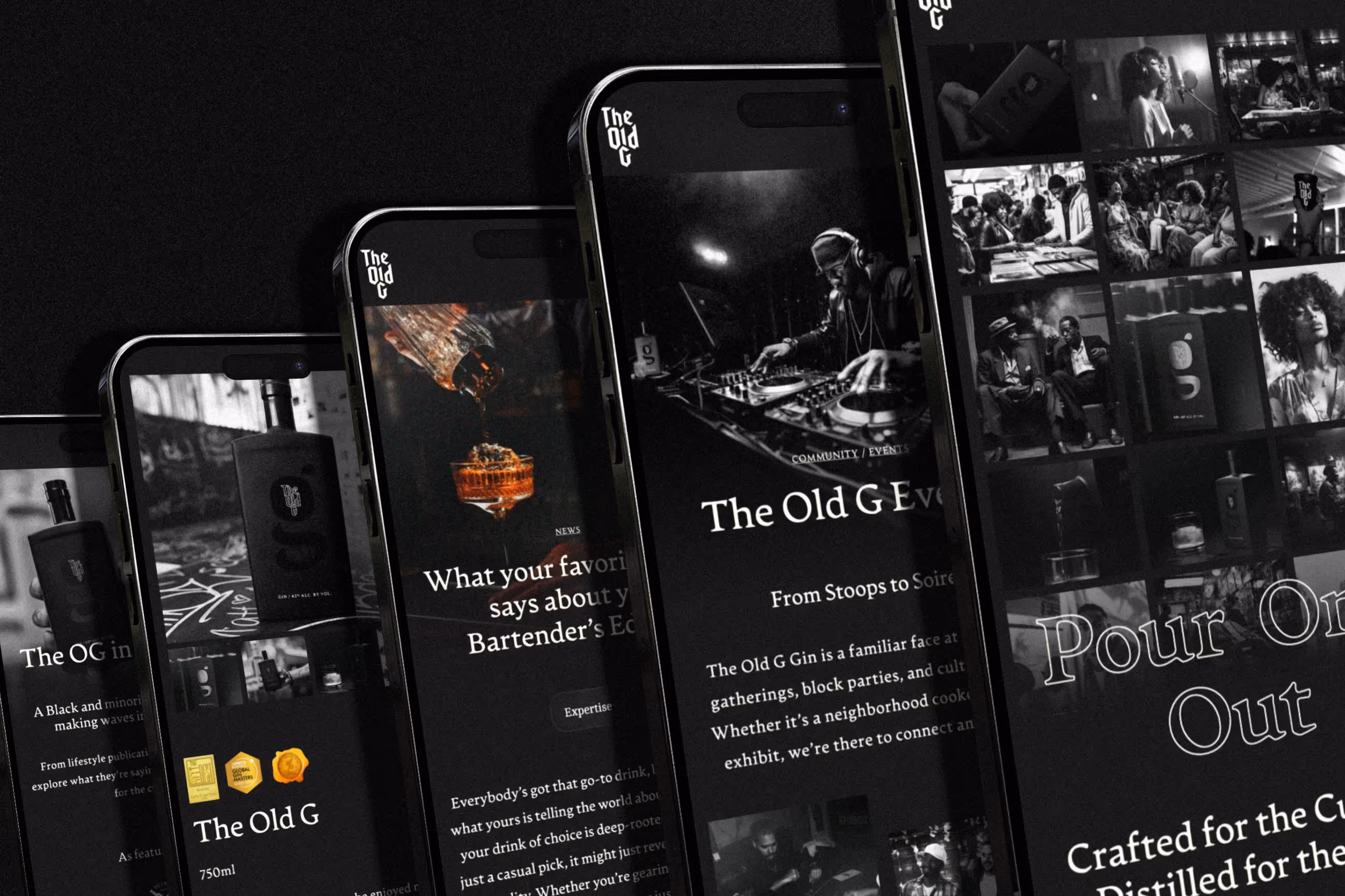 Peter and co-founder, artist, Herbru Brantley set up The Old G as a black minority brand that created a high quality craft gin. Created to give voice to the unrepresented, it embodies culture, legacy, and the spirit of community. Peter approached me to initially develop a new website in webflow based off designs, but after some early discussions, I pitched the idea of doing the design and build myself and bringing his vision for the brand website to life. We had a lot of in depth discussions around usability and while having a graphic heavy site tells the story of the brand it must be useable, sell the the product and engage users.
